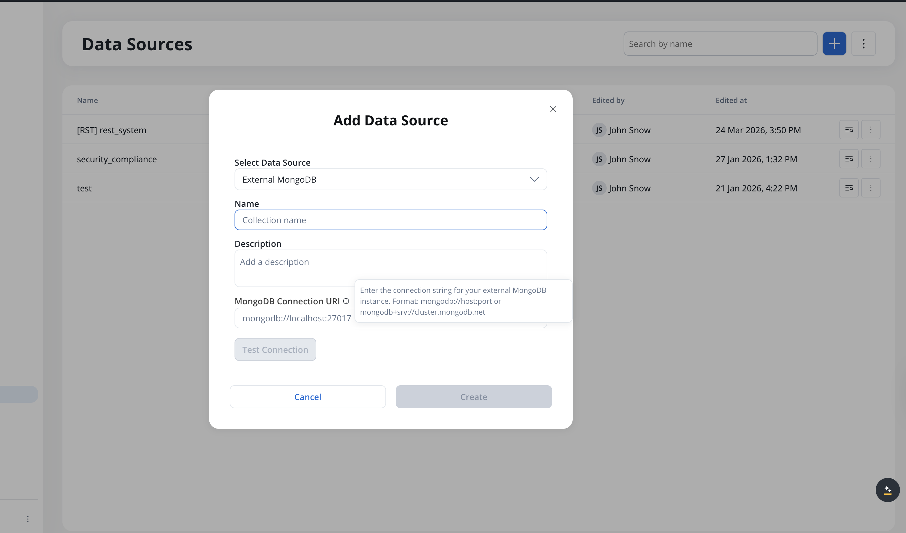 Connect to MongoDB instances you already manage, including Atlas, self-hosted, or cloud-managed deployments